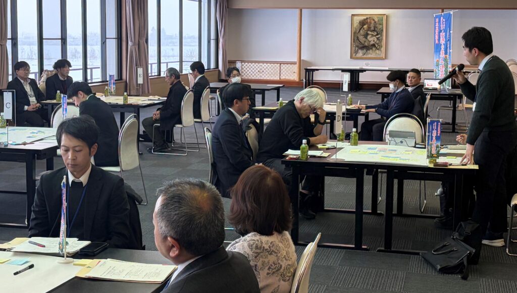 当日は、紅花の生産者や実需者をはじめ、観光や地域振興に取り組む団体・関係者など、約30名にご参加いただき、オリエンテーションやグループワークを行いました。