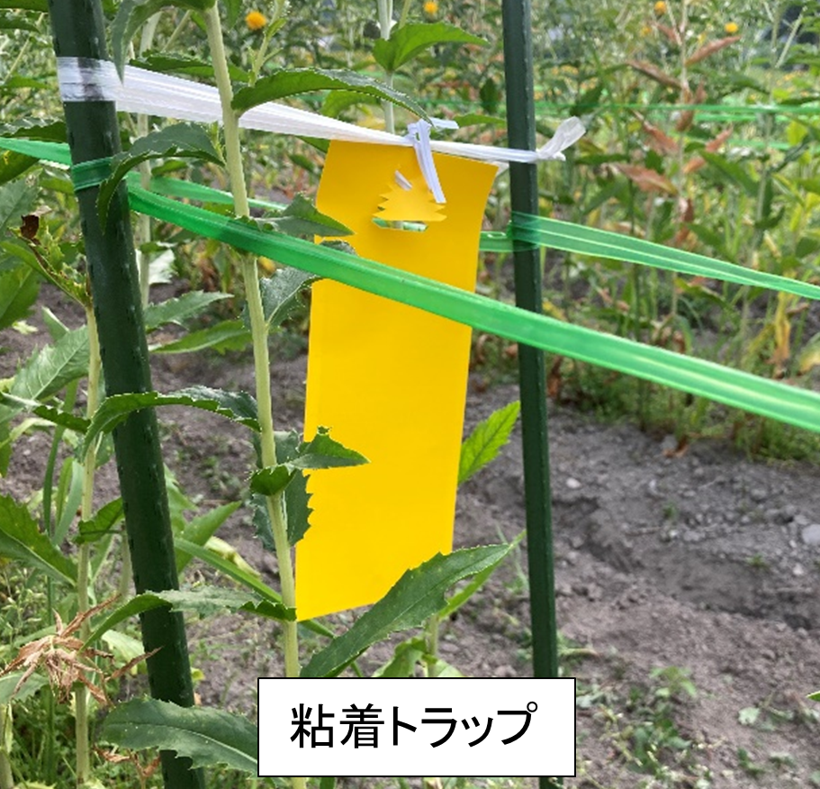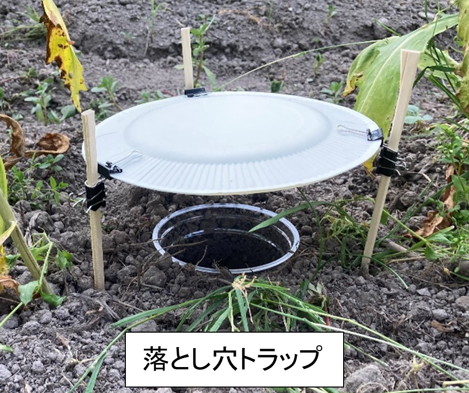 6月末から7月初週にかけて、地上を歩行する昆虫を捕獲する「落とし穴トラップ」と、紅花の周