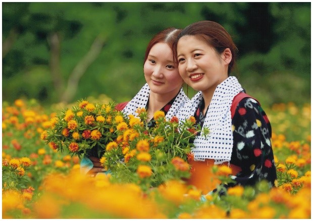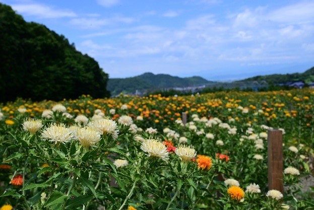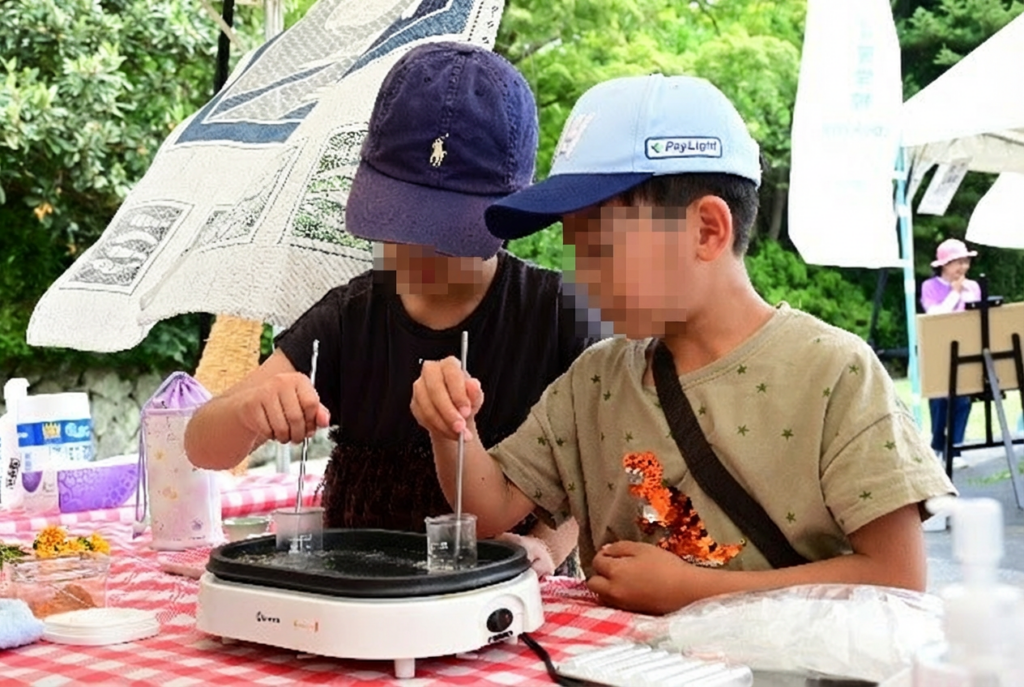 こんにちは、天童市農林課です。天童市では令和7年7月6日から6日にかけて天童紅花まつりが行われました。当日は紅花染め体験や、紅花リップクリームづくり、紅花を使用したお菓子の販売など様々なブースが設けられ、多くの方で賑わいました。また、県内ではあまり見られない白紅花も見ごろを迎え、紅白の紅花がそろって咲き誇る2日間となりました。来年度もぜひお越しください。